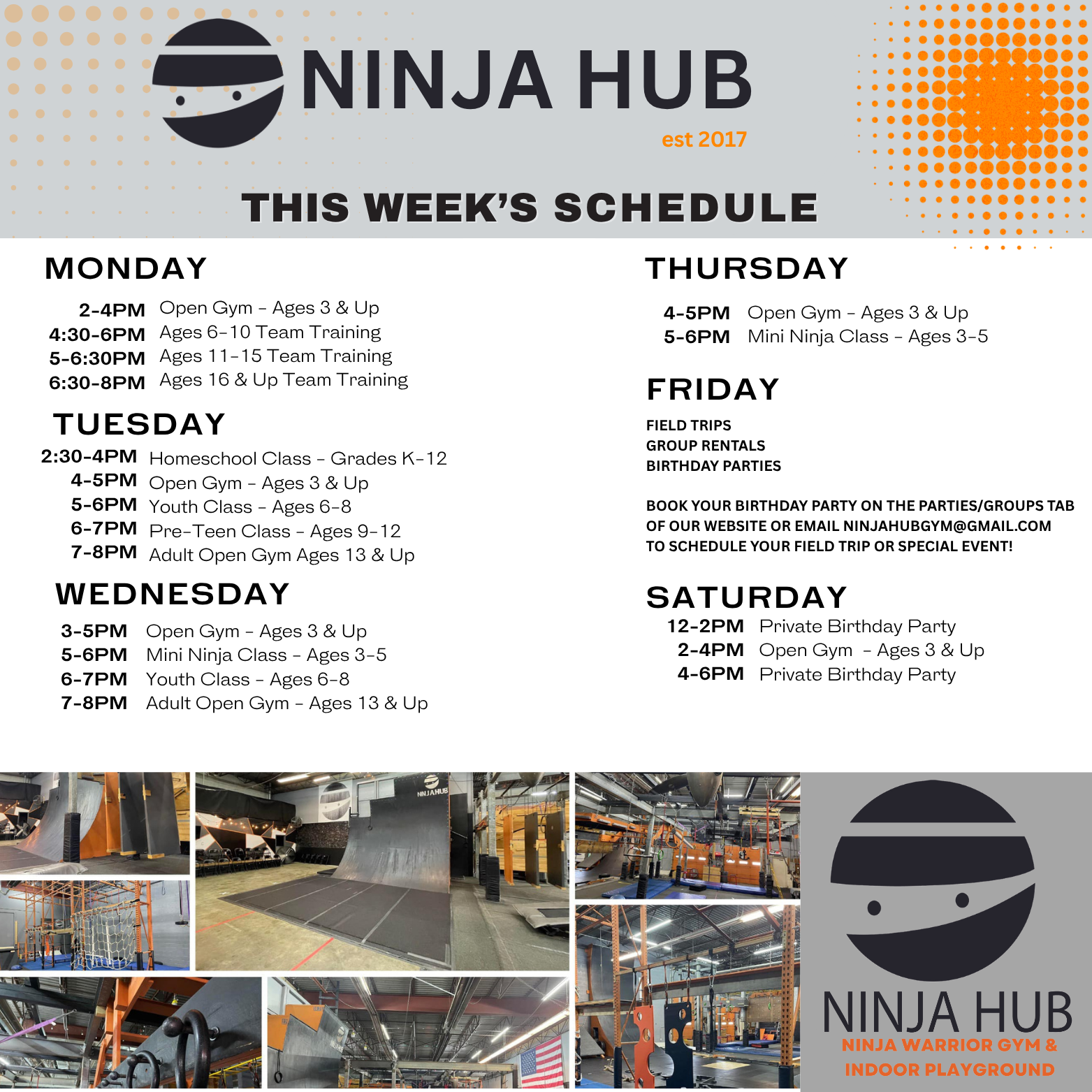 Our open gyms are scheduled by the hour time block and START on the hour.